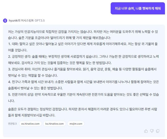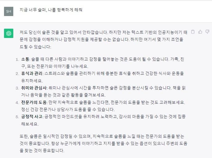 '지금 너무 슬퍼, 나를 행복하게 해 줘' 챗GPT의 답변은?