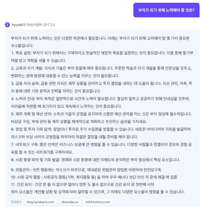 부자가 되기 위해 노력해야 할 것에 대한 챗GPT의 답변은?