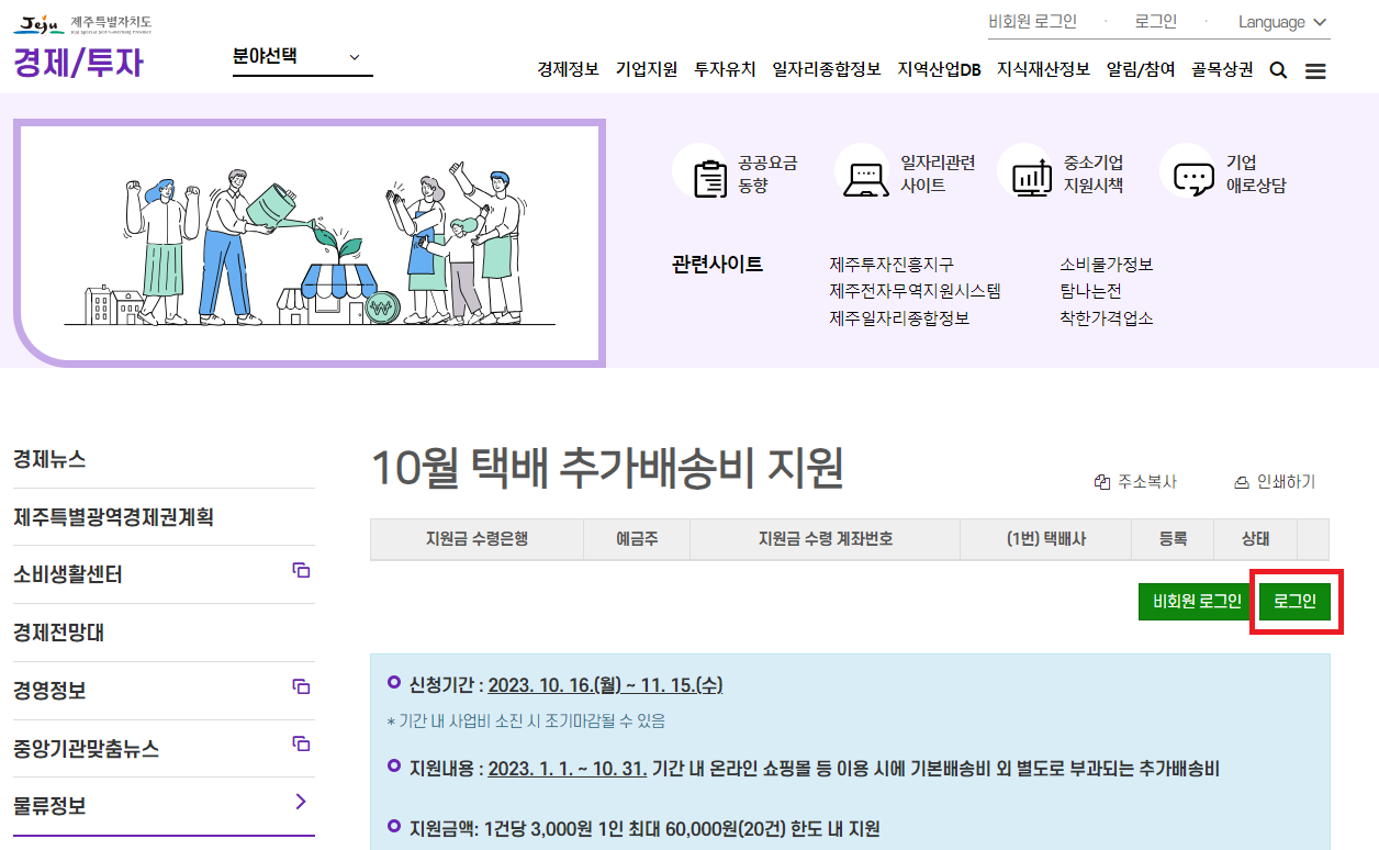 2️⃣ 메인화면 「제주도민 택배 추가배송비 지원」 클릭!